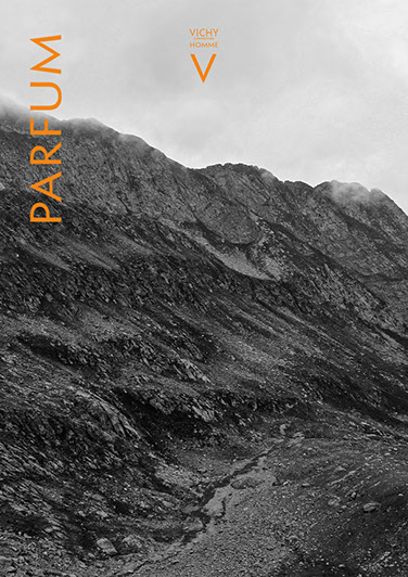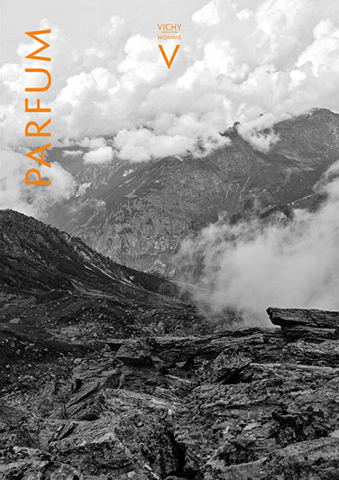 [Projet fictif] Les laboratoires Vichy lancent une nouvelle gamme de produits : 1 eau de toilette et 1 parfum pour Homme. La mission consiste à concevoir l'identité visuelle de ces produits et de les mettre en scène.