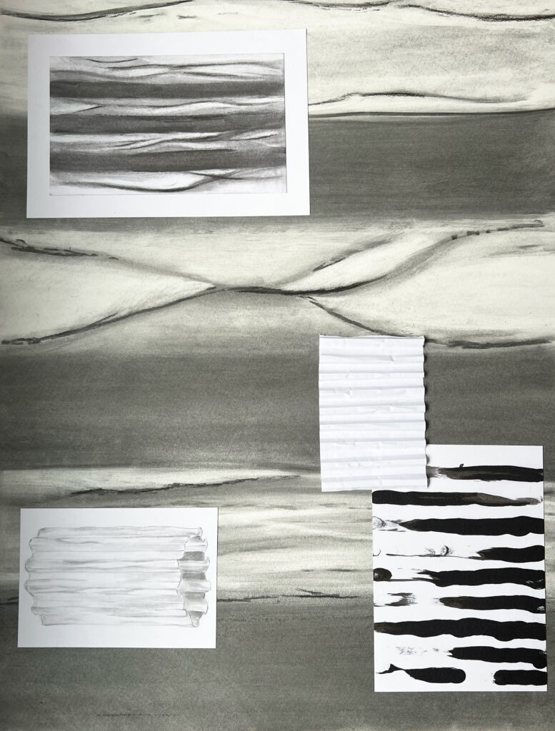 Il m’a été demandé de travailler sur la ligne et le volume, en développant une série de dessins uniquement composés de lignes. Ces dessins devaient s’inspirer de notions telles que le réseau, la tension ou l’enchevêtrement, afin d’explorer la ligne comme un élément vivant dans l’espace.