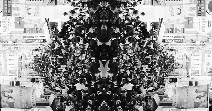 Le spectateur est immergé dans un univers rapide et stressant. La musique est angoissante. Elle donne l’impression de suffoquer au milieu du bruit et de l’agitement urbain. La ville se déforme sous nos yeux, elle devient incontrôlable. Nos perceptions sont bousculées: le ciel prend la place de la terre, les grattes-ciel tournoient, les gens marchent sur la tête. La vidéo joue sur nos sensations : oppression, envahissement, peur... Elle questionne et propose une expérience dérangeante ou hypnotisante immergé dans le coeur de la ville.